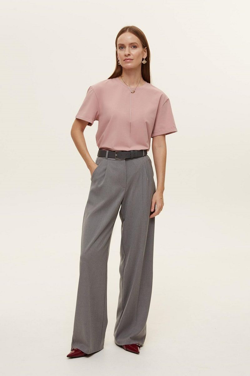 Брюки палаццо на молнии из серой шерсти (Размеры 44, 48)