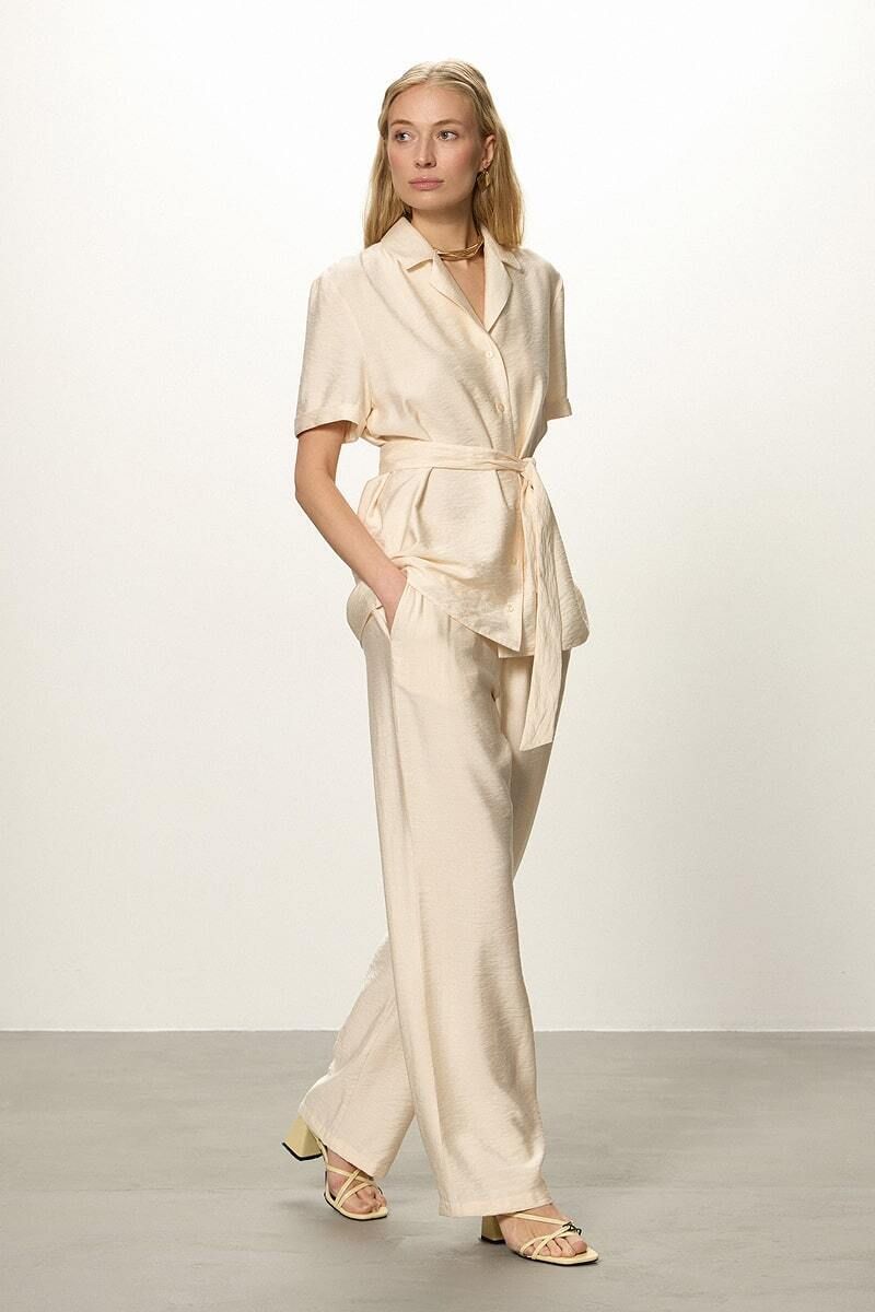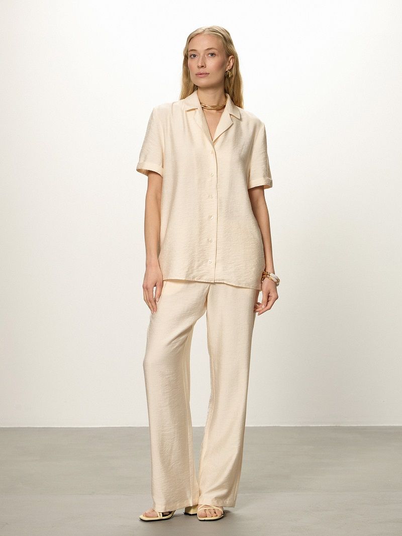 Брюки палаццо на резинке молочная вискоза (Размер 42, 44)