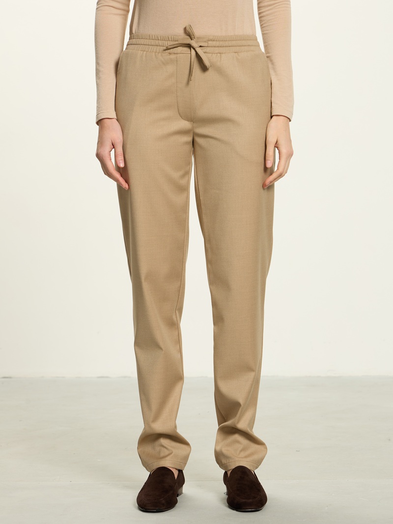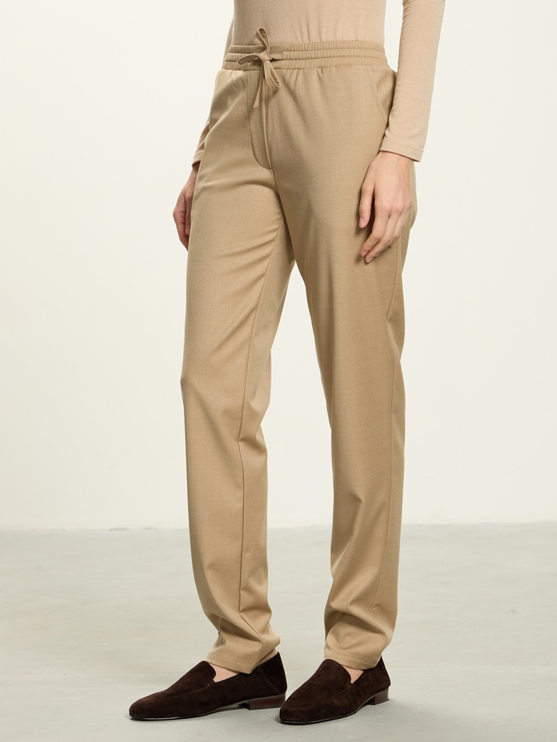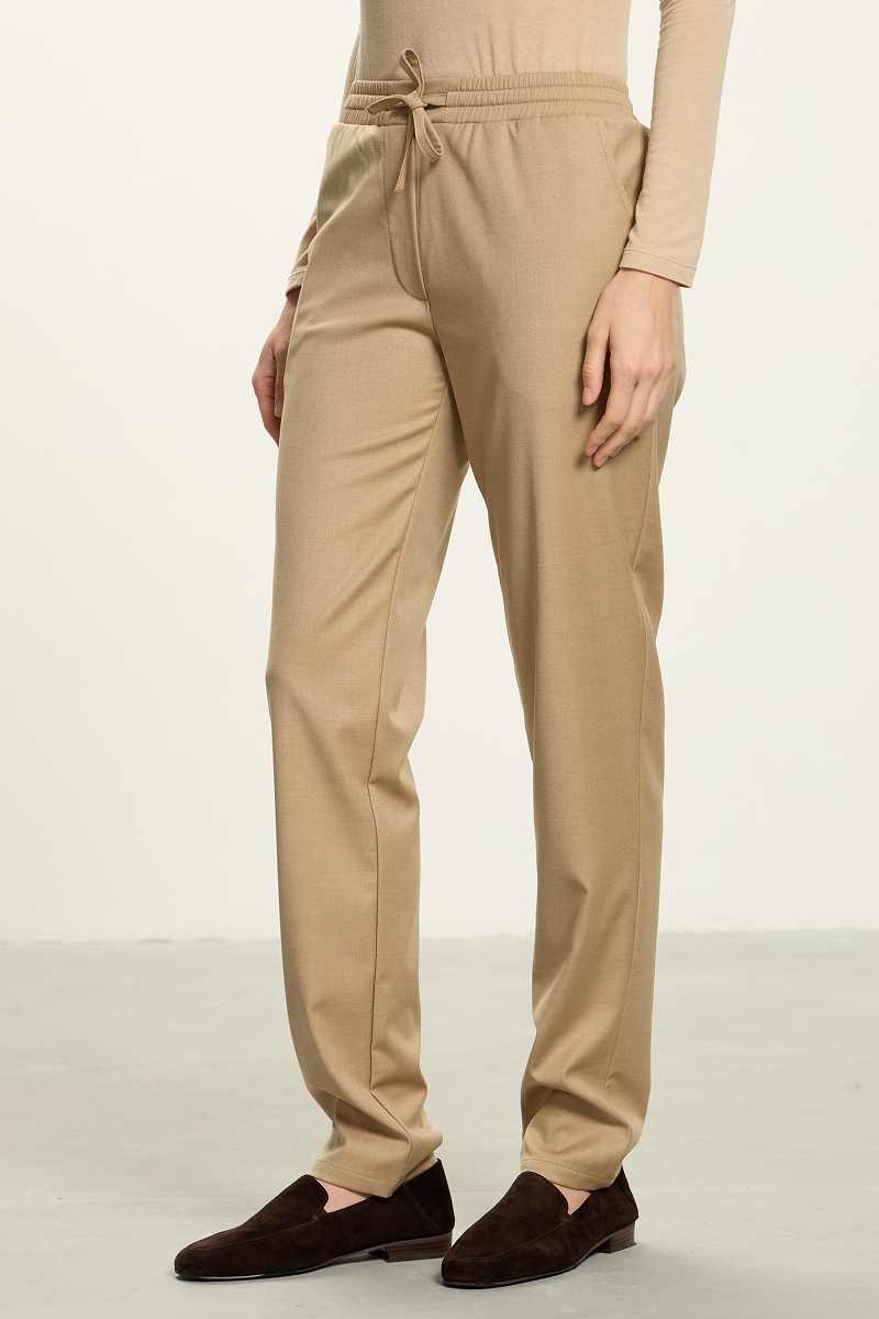 Брюки Чинос на резинке бежевые смесовая шерсть