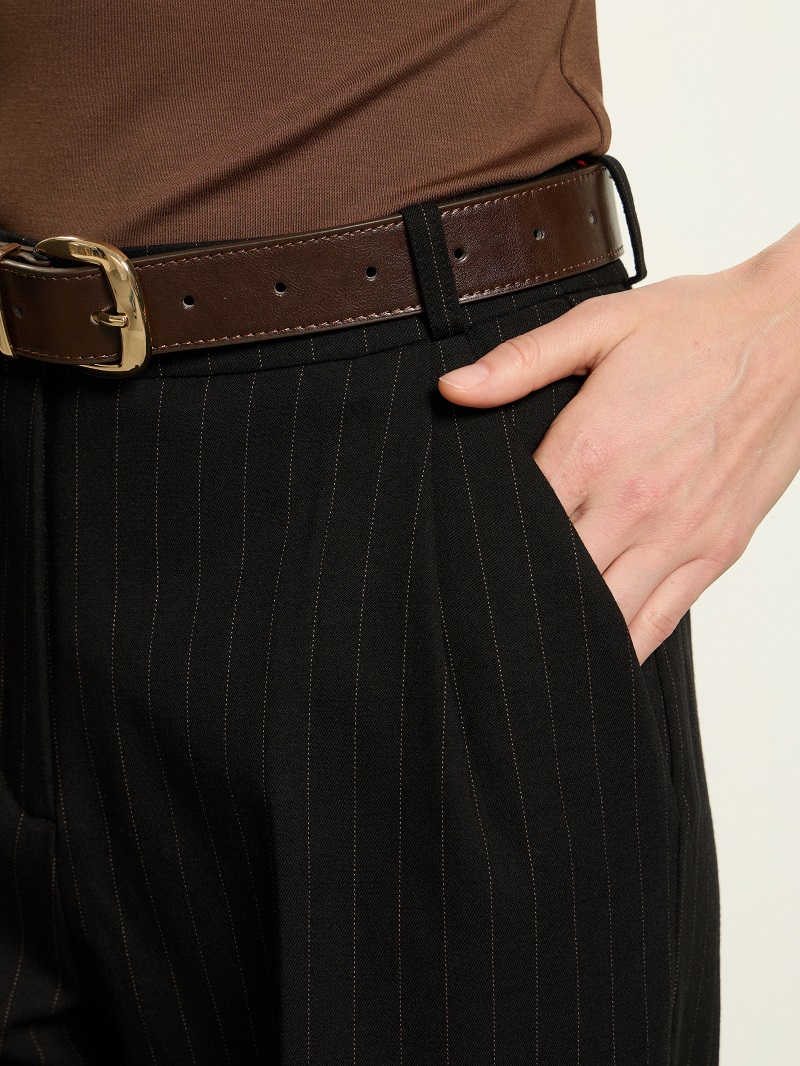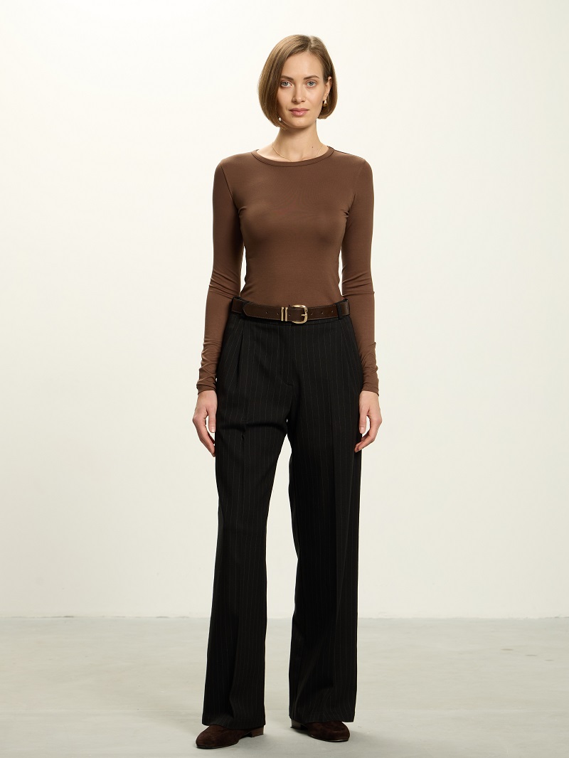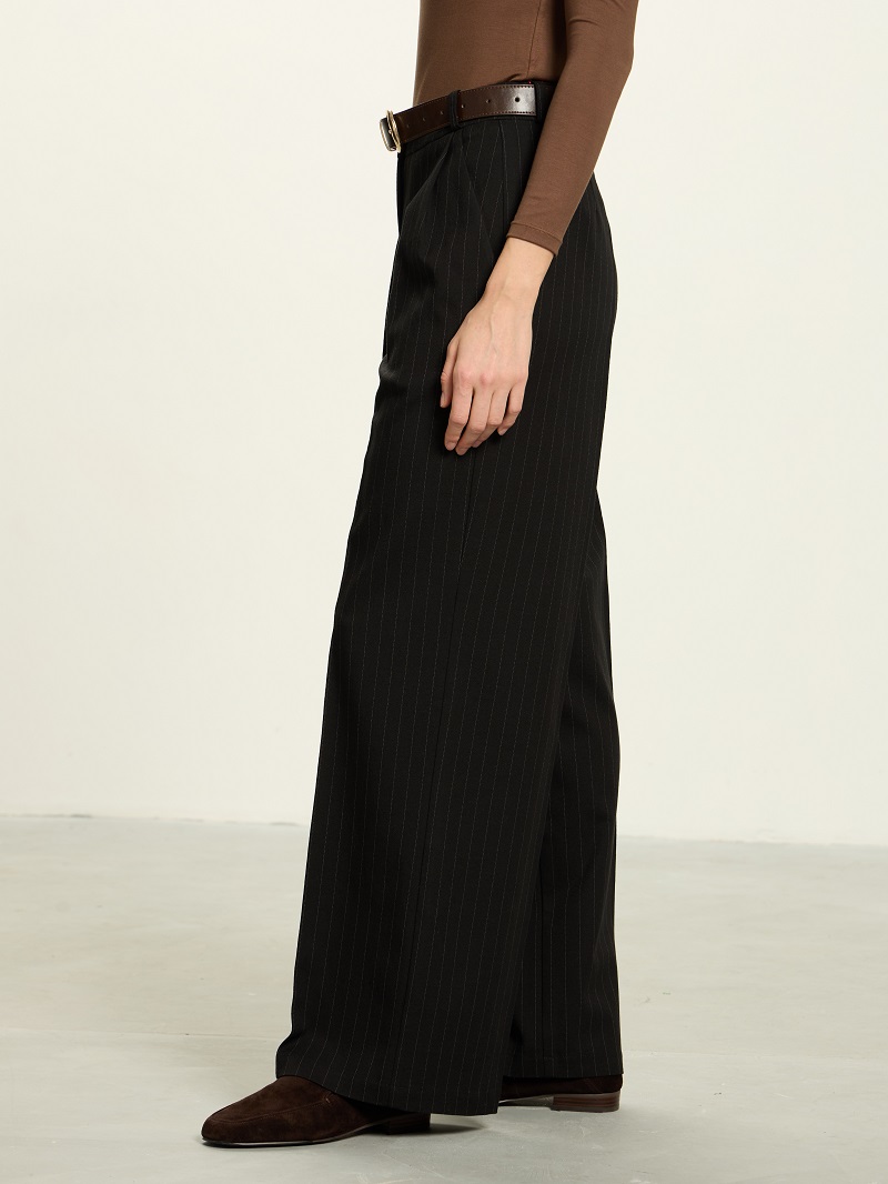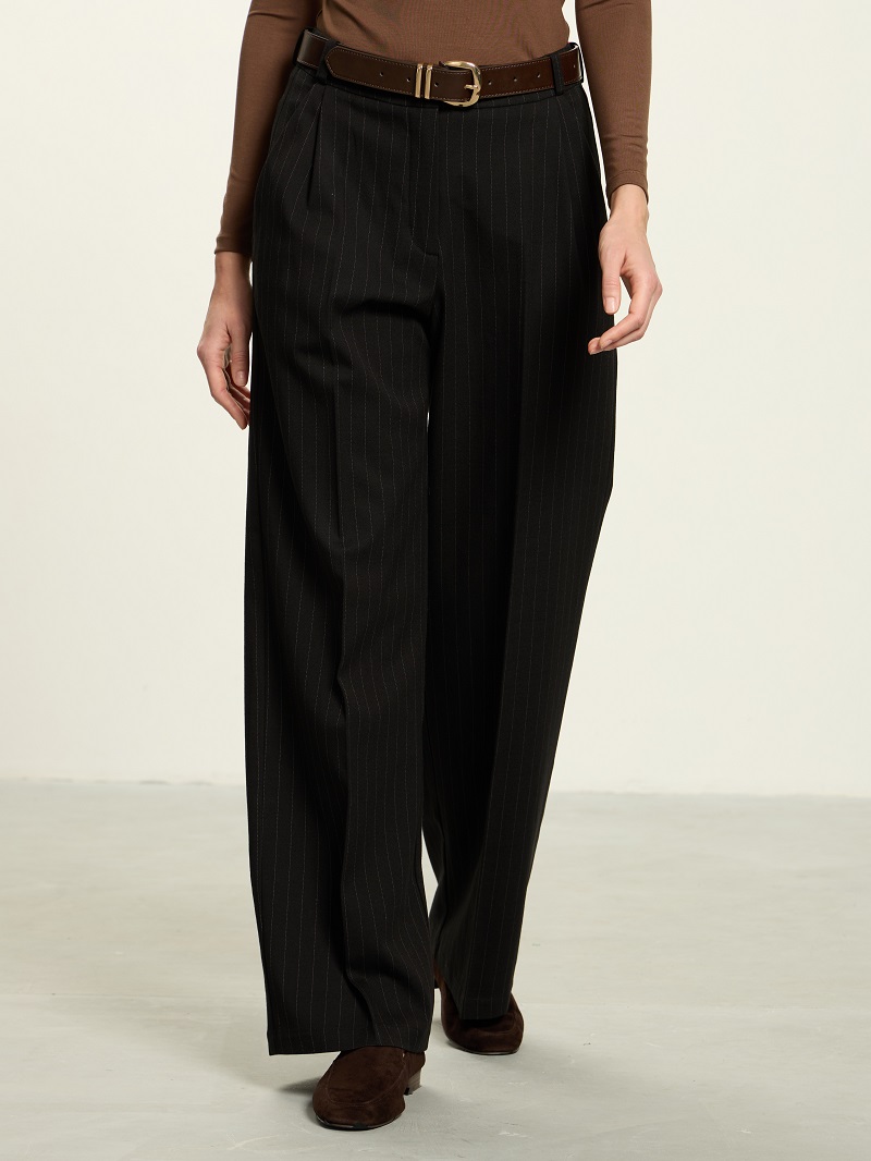 Классические брюки с глубокими защипами по талии.