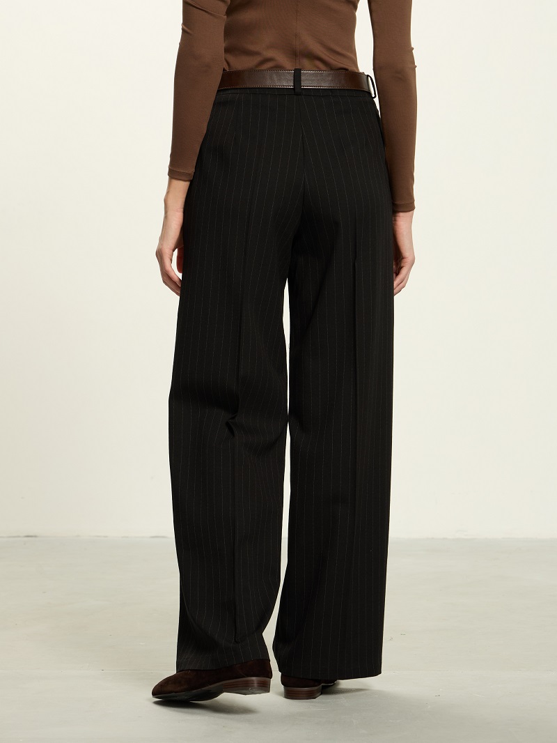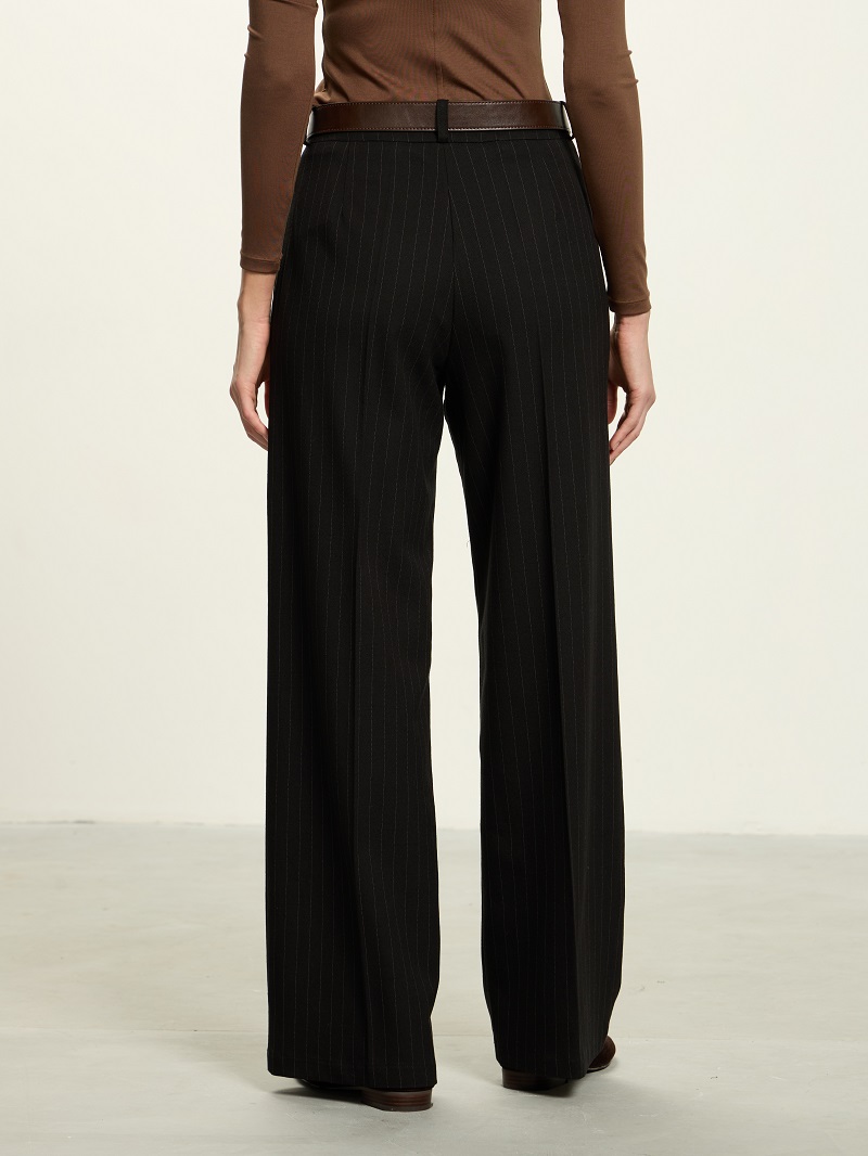 Брюки Палаццо на молнии в полоску черные смесовая шерсть