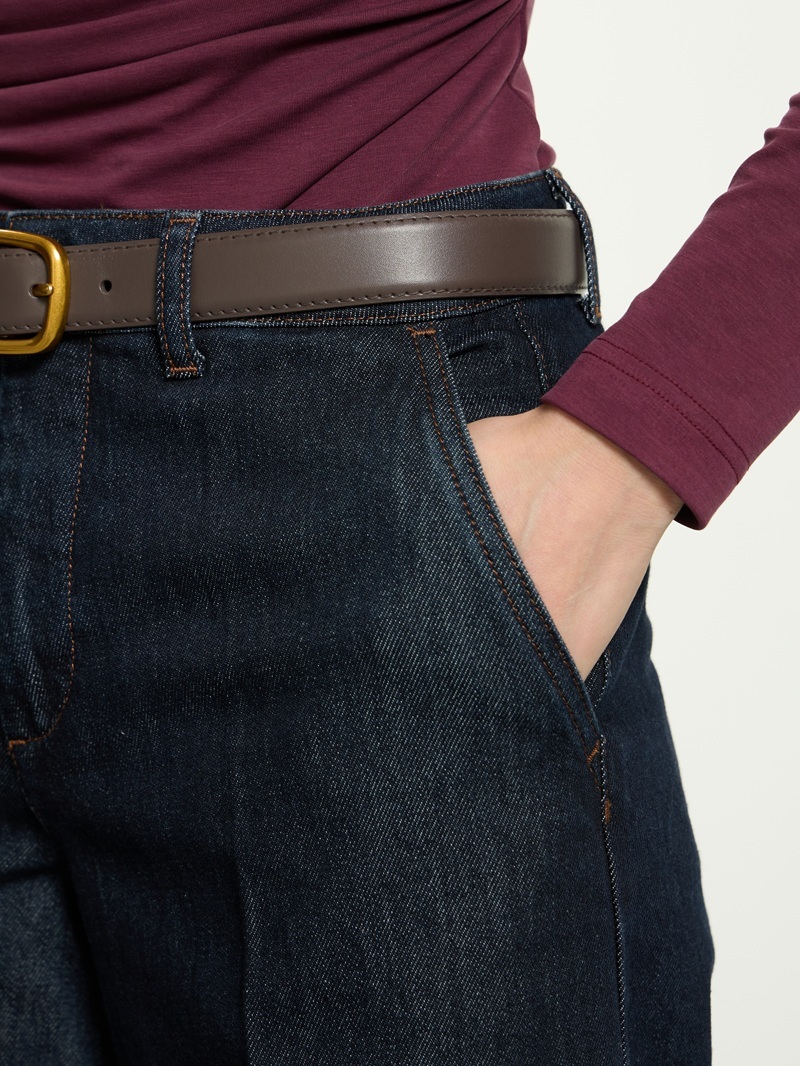 Отличительная деталь модели - стрелки, которые визуально вытягивают силуэт и добавляют джинсам легкий налет классического стиля.