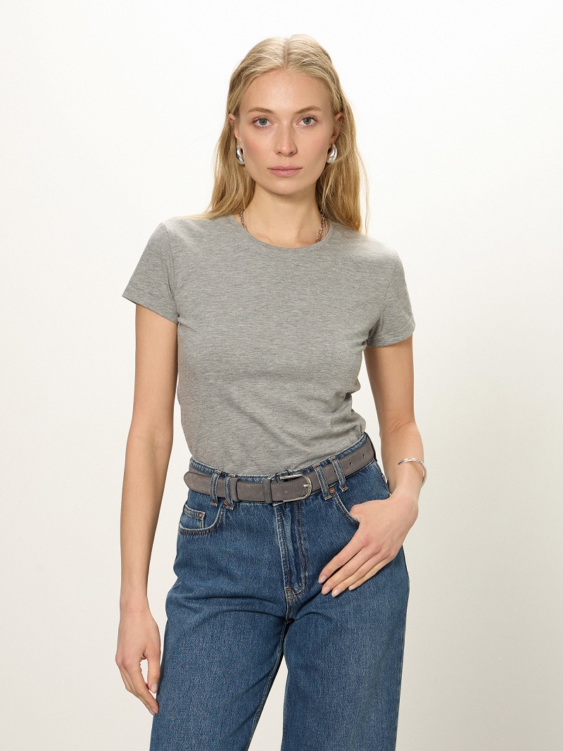 • Идеальная базовая футболка приталенного силуэта с коротким рукавом и округлой горловиной.