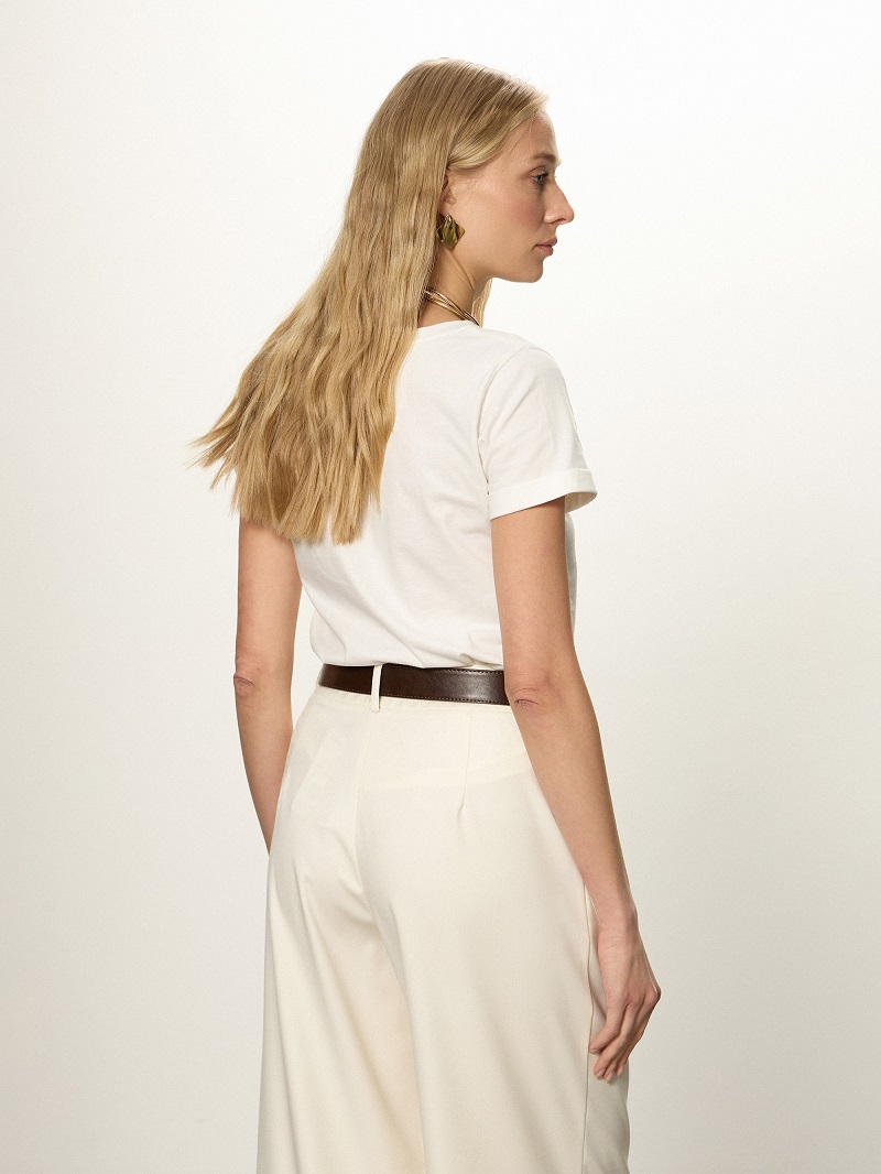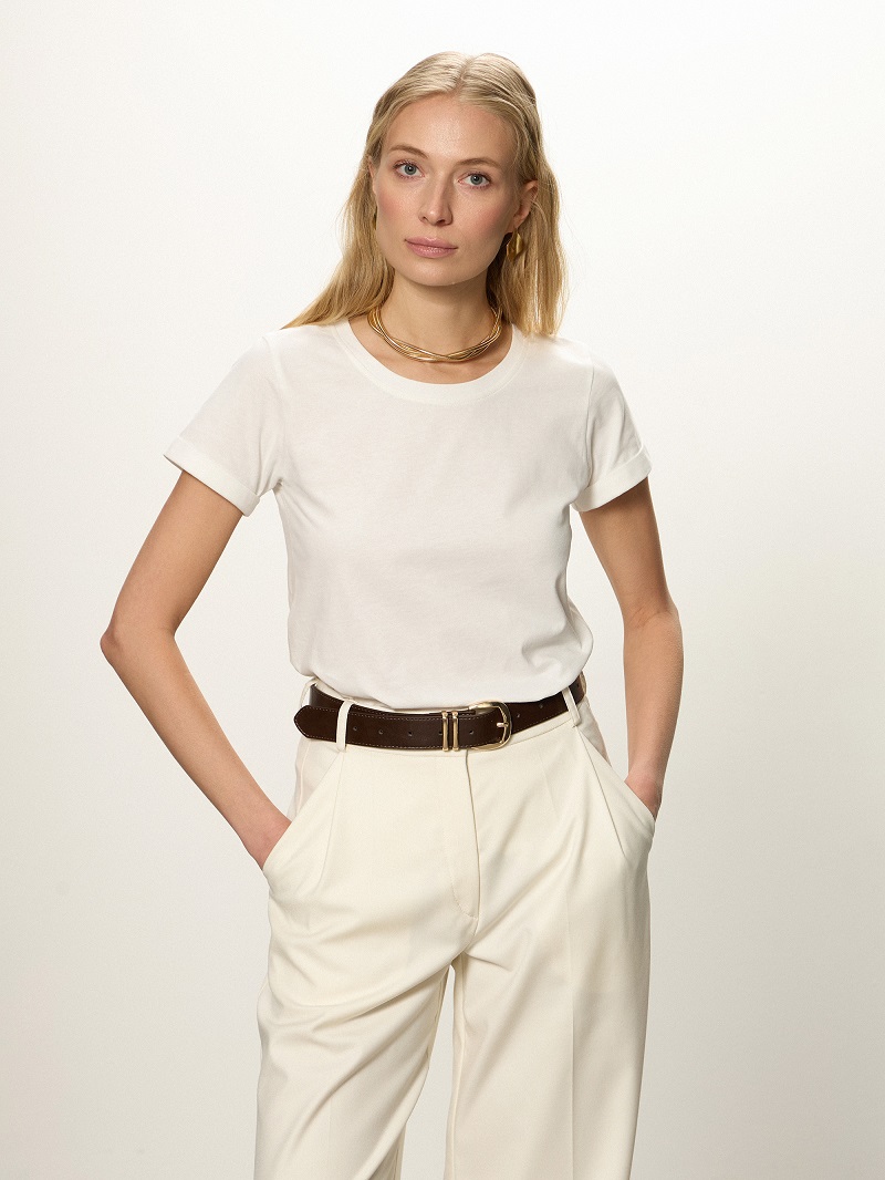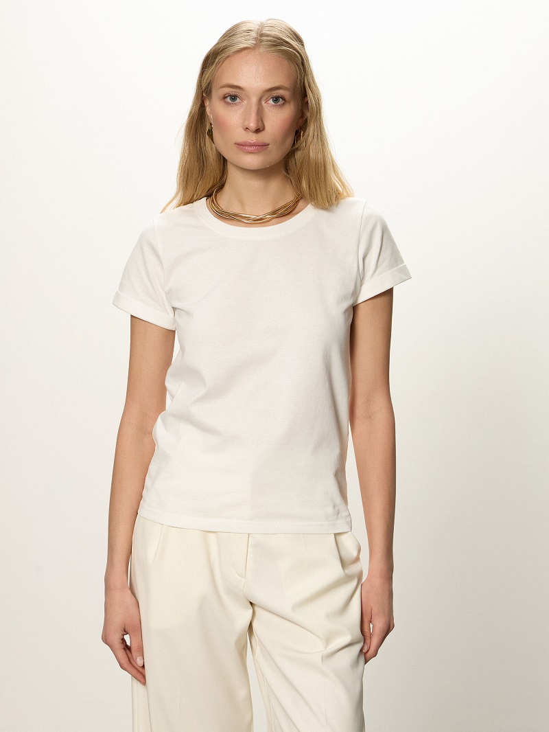 • Классическая футболка прямой посадки с коротким рукавом с отворотом и округлой горловиной.