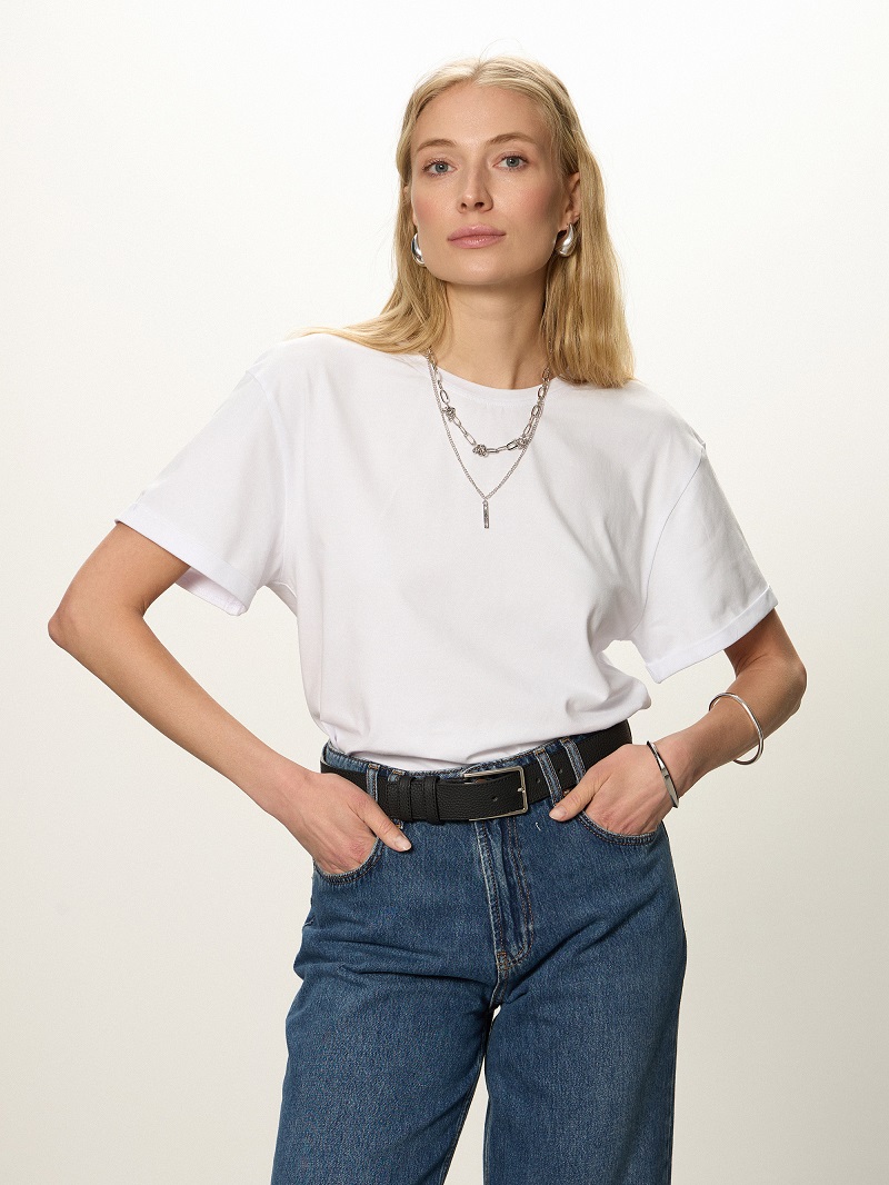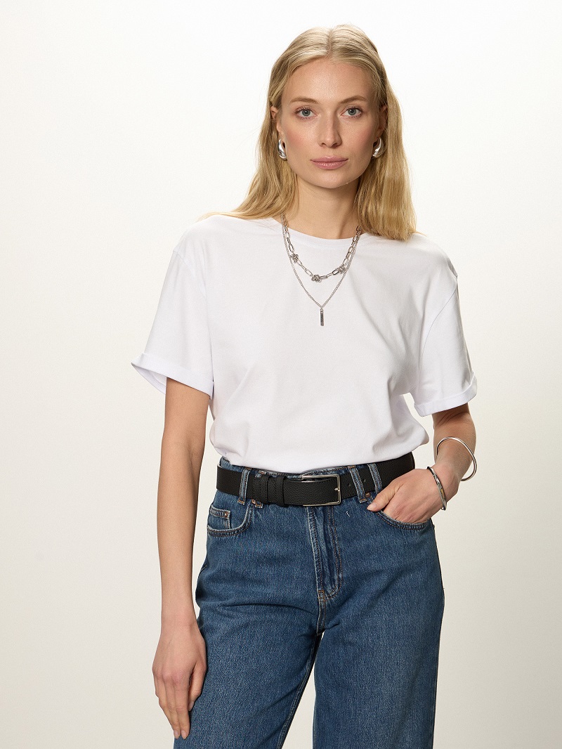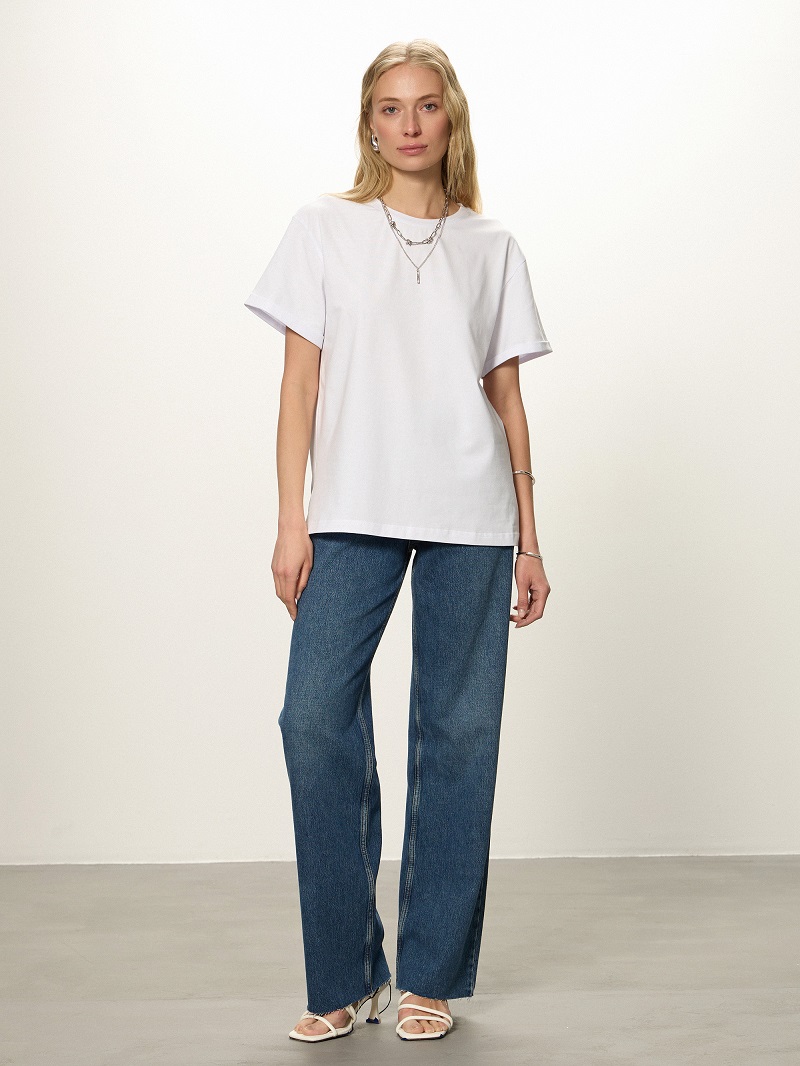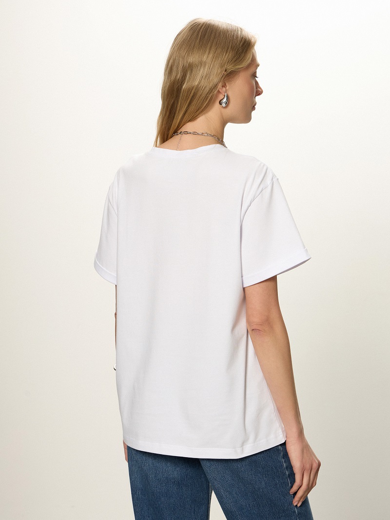 • Футболка свободной посадки с коротким рукавом с отворотом и округлой горловиной.