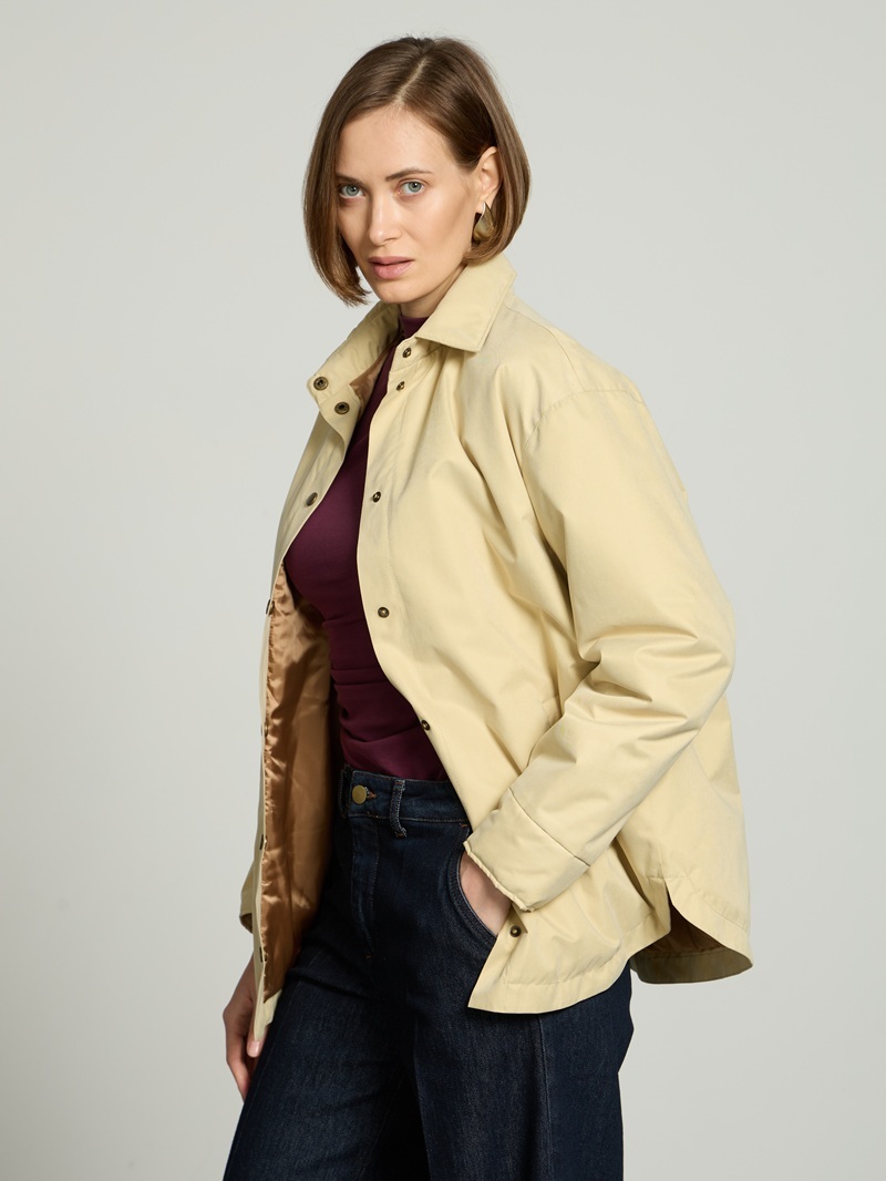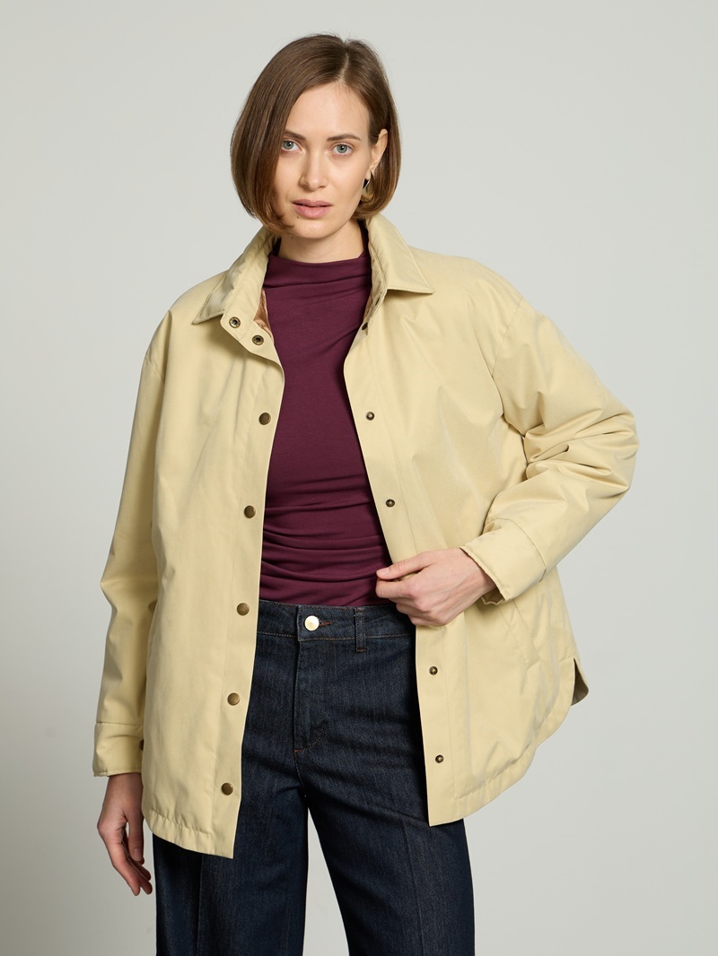 Куртка-ветровка выполнена из плащевки с приятной матовой поверхностью.