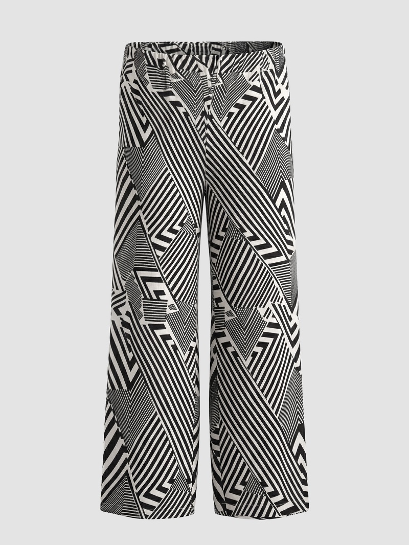 Палаццо на резинке принт чёрная геометрия