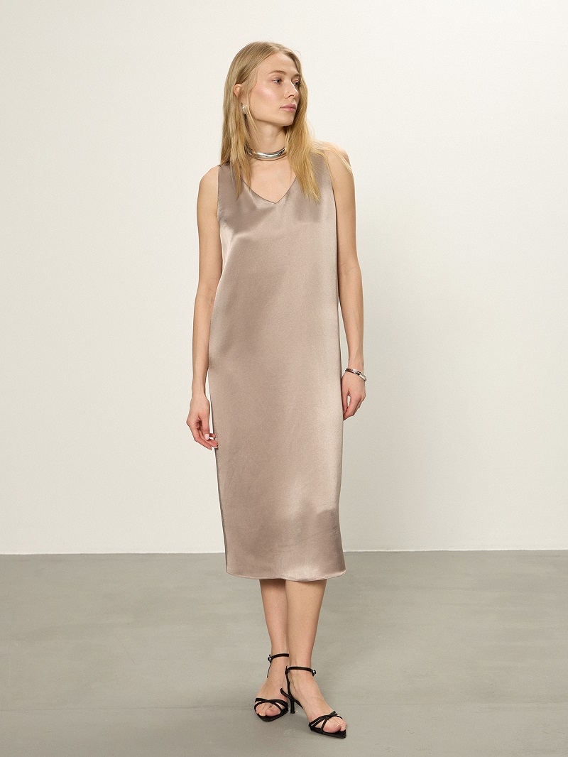 Минималистичное платье-комбинация из плотной атласной вискозы.