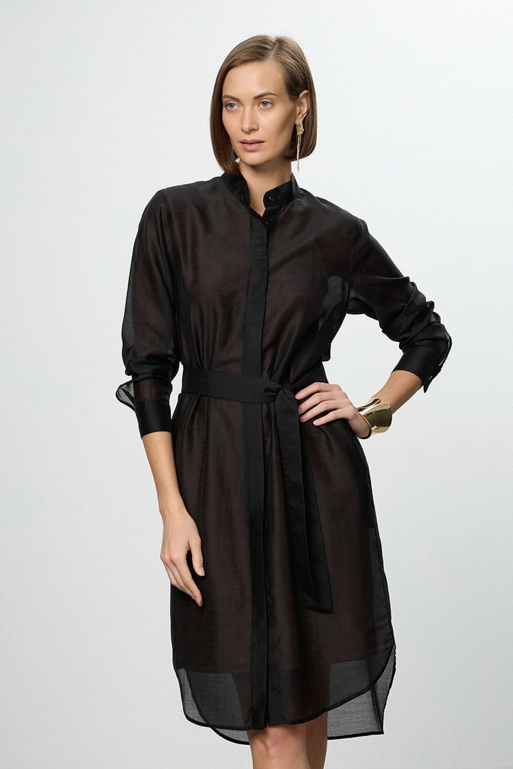 Широкие бретели позволяют сочетать платье с любым бельем, а прямой силуэт можно приталить с помощью ремня или пояса.