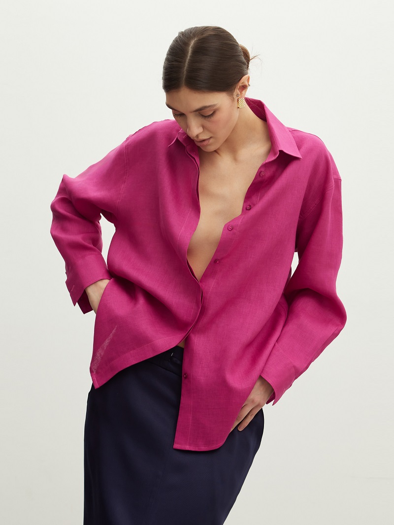 Рубашка Хельсинки Фуксия лен