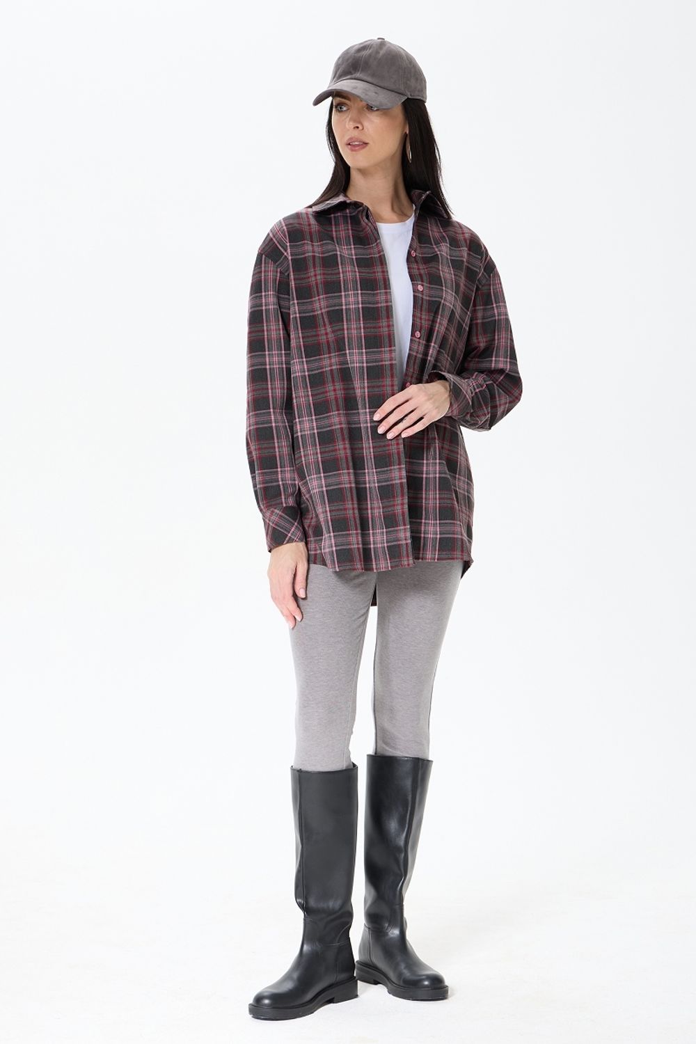 Такая рубашка отлично смотрится в осенне-зимних образах с теплыми леггинсами,  джинсами или брюками.