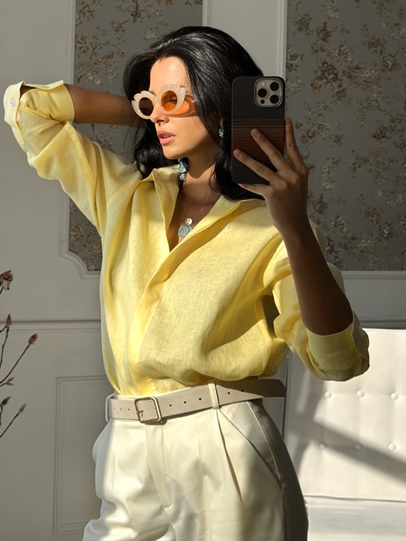 Рубашка Хельсинки желтый лен