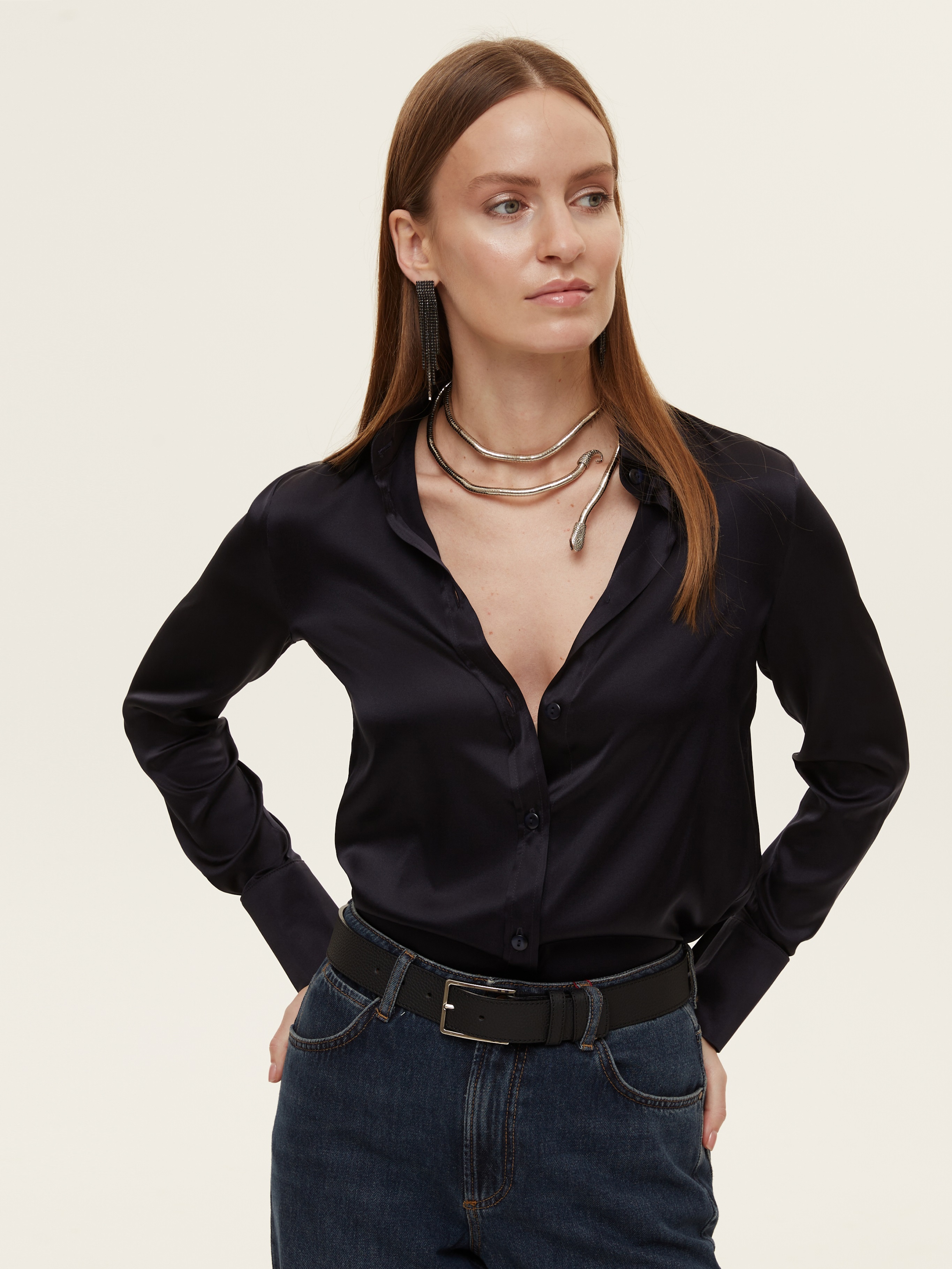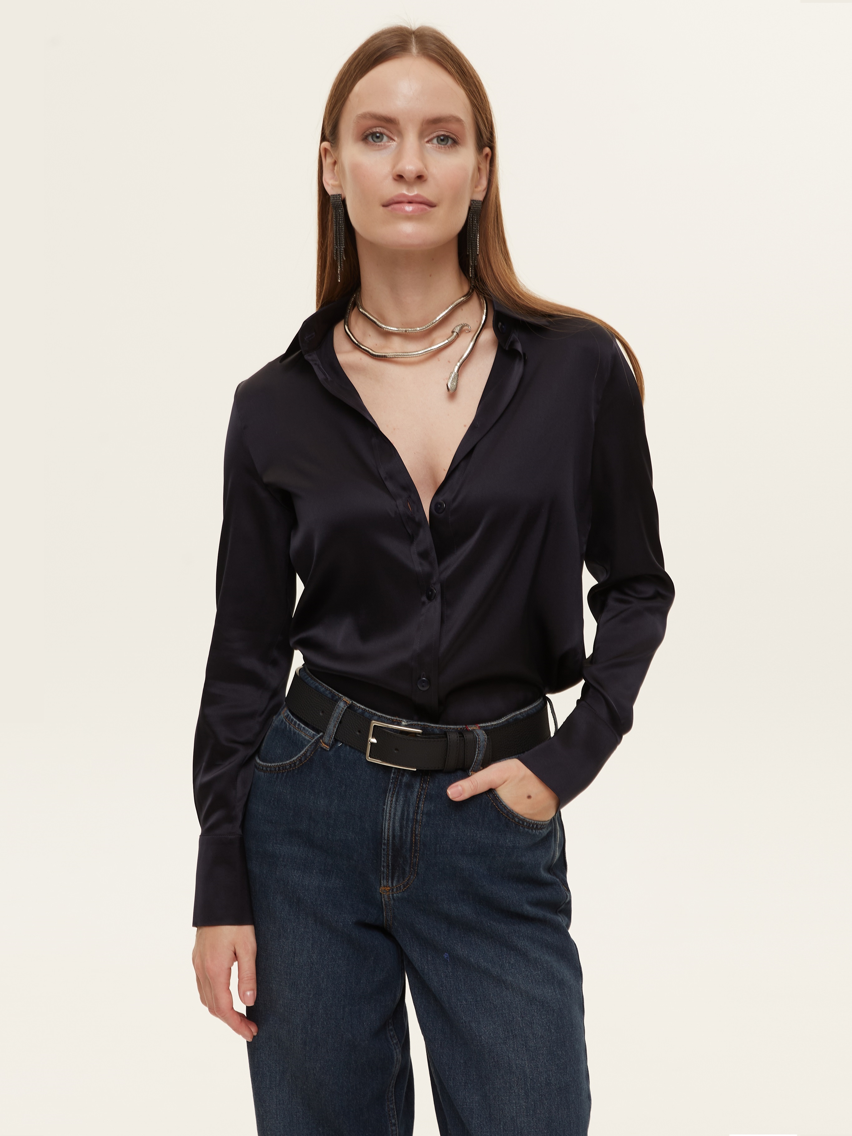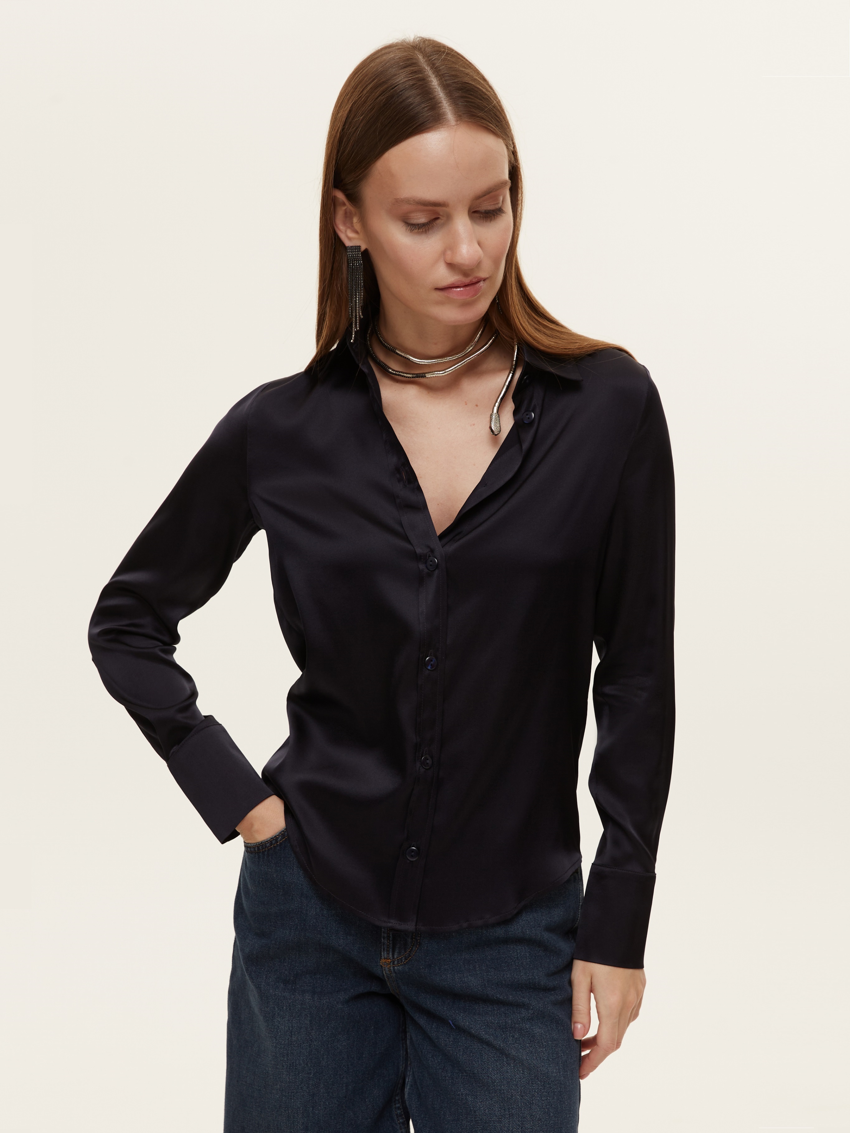 • Модель можно сочетать с платьями комбинациями, даже просто с джинсами, и, конечно, c юбками и брюками.Рубашка прямого силуэта без вытачек.