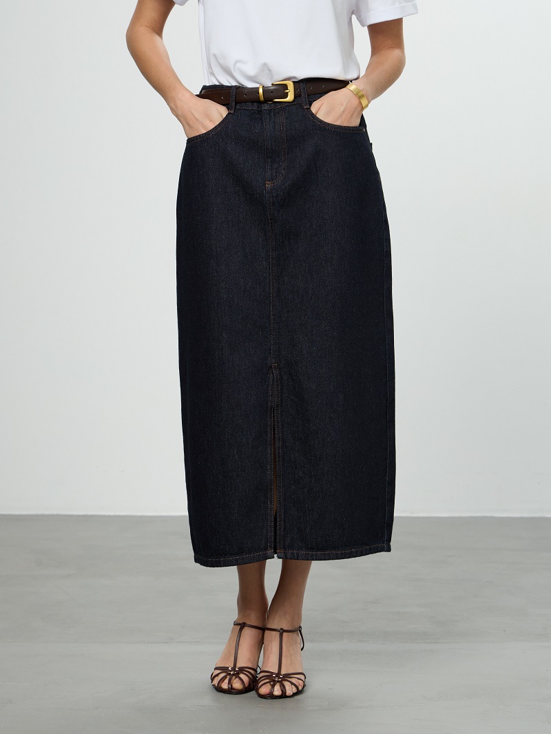 • Универсальная длина ниже колен подчеркнута невысоким разрезом для обеспечения комфорта движения. Спереди и сзади расположены карманы.