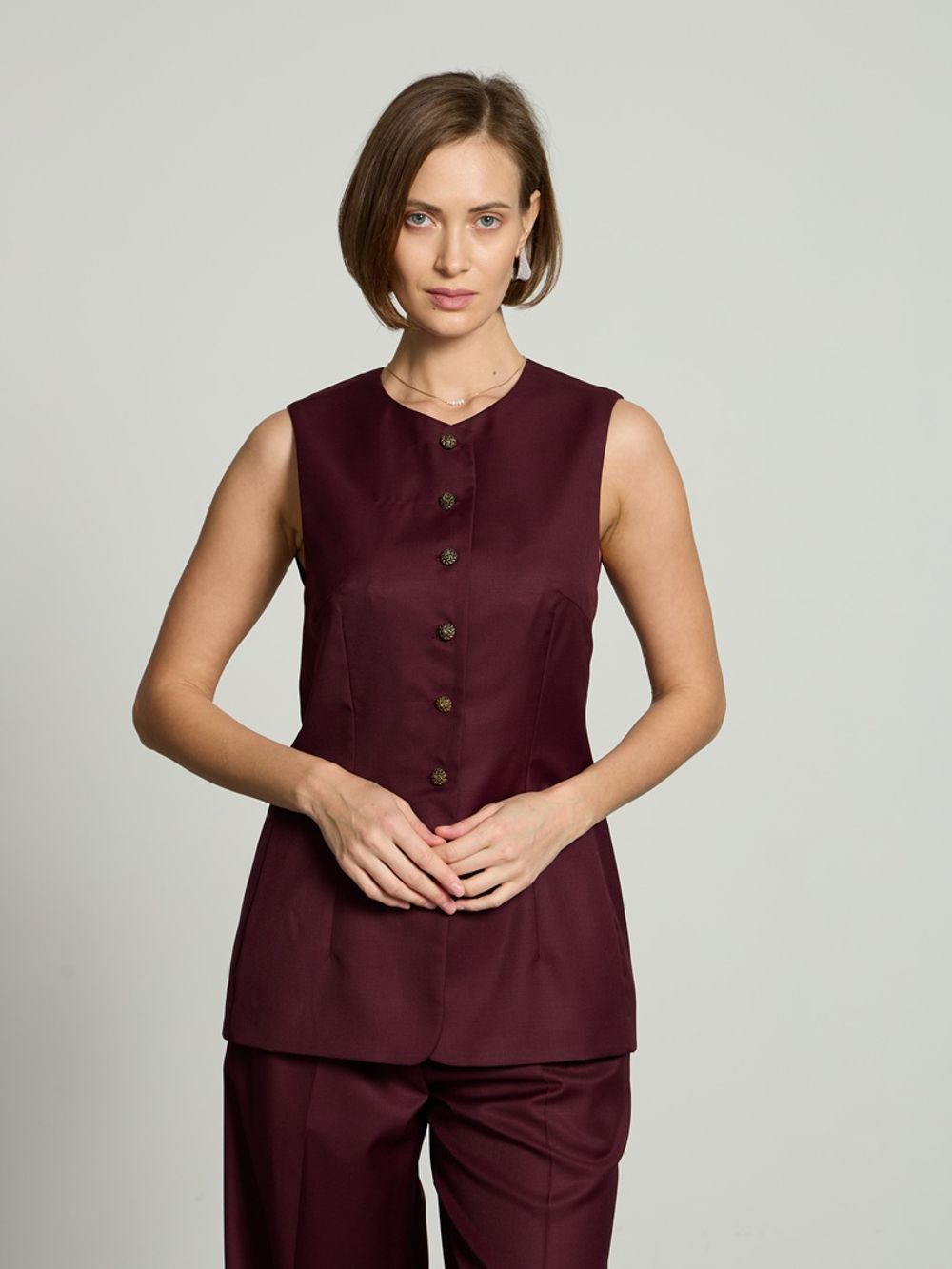 Особенно эффектно он будет выглядеть в комплекте с брюками-палаццо из той же ткани.