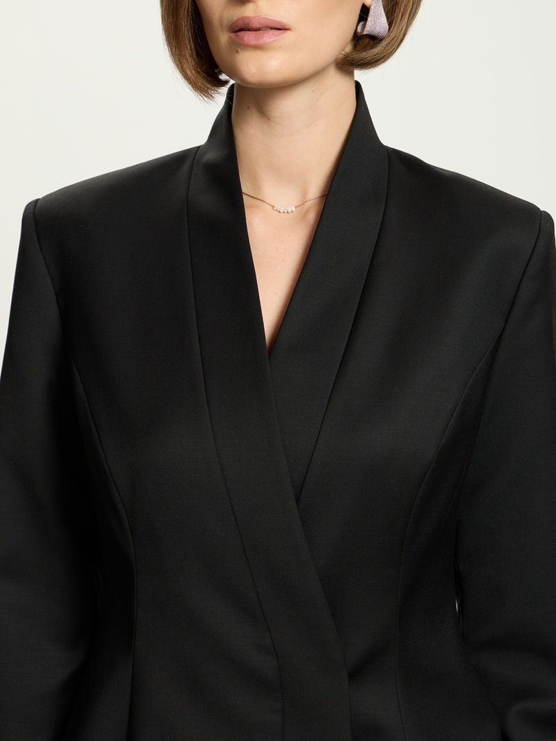 Акцентная фурнитура, итальянская костюмная шерсть с добавлением кашемира  и качественная посадка сделают его ярким элементом любого гардероба.