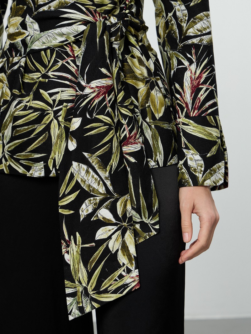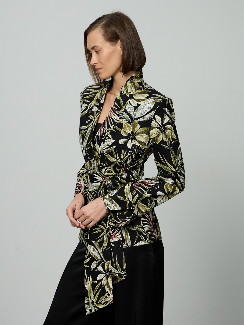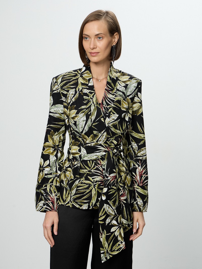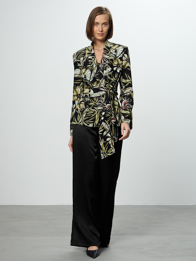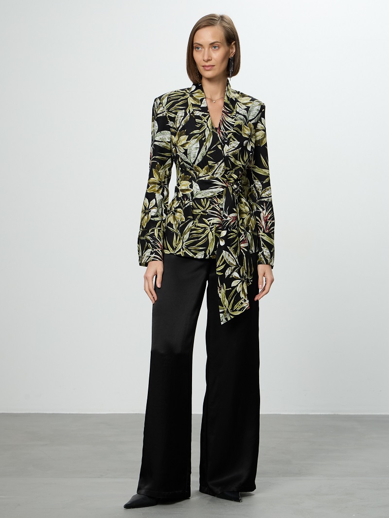 Дизайнерский жакет с широкими завязками спереди, которые обеспечивают идеальную приталенность и позволяют  менять настроение образа, завязав их бантом или узлом.