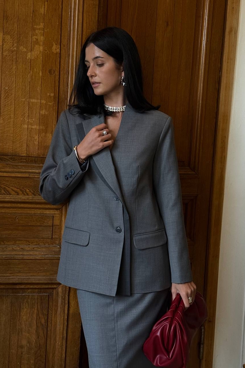 Стильный двубортный жакет из итальянской шерсти объема over-size имеет необычный акцент в виде двойного лацкана с одной стороны. Эта деталь делает классический жакет уникальным и привлекает внимание окружающих, при этом не нарушая классической стилистики жакета. В комплекте с брюками или юбкой из этого же материала такой жакет будет уместно смотреться в офисе или на официальном мероприятии, а, например, в комплекте с джинсами - в кэжуальных образах.