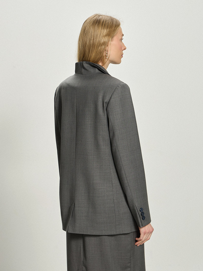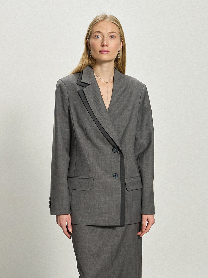 Жакет с двойным лацканом серая шерсть мериноса